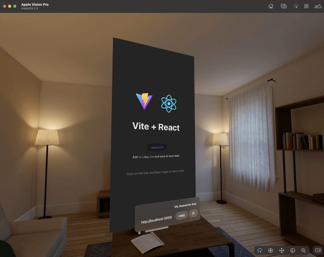 Replace $XR_DEV_SERVER with the URL generated by XR_ENV=avp npm run dev in the previous step.